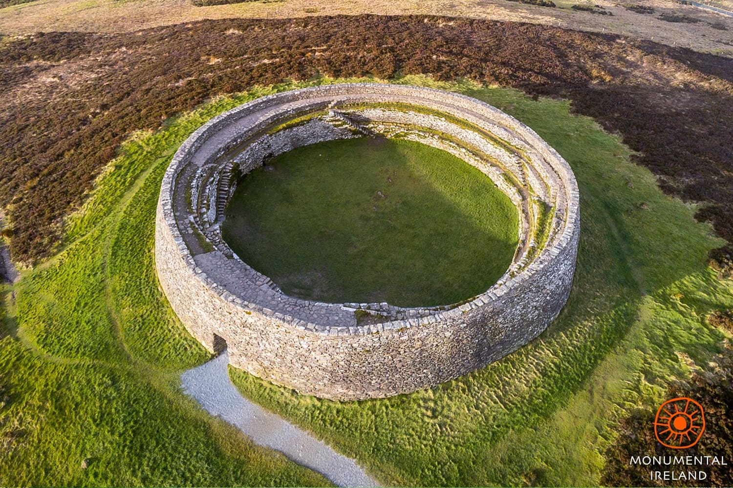 El Grianán de Ailech es una fortaleza circular de piedra (cashel o ringfort) cuyo origen se remonta probablemente a la Edad del Hierro tardía o al inicio de la Alta Edad Media, alrededor de los siglos VI–VII d.C.. Sin embargo, el lugar pudo haber tenido un uso ritual o defensivo incluso anterior.