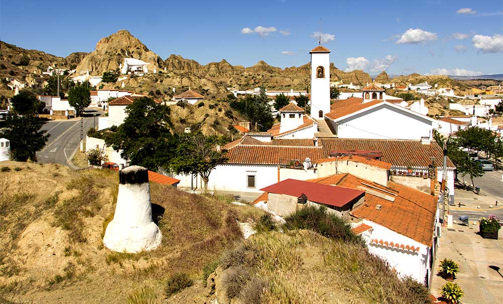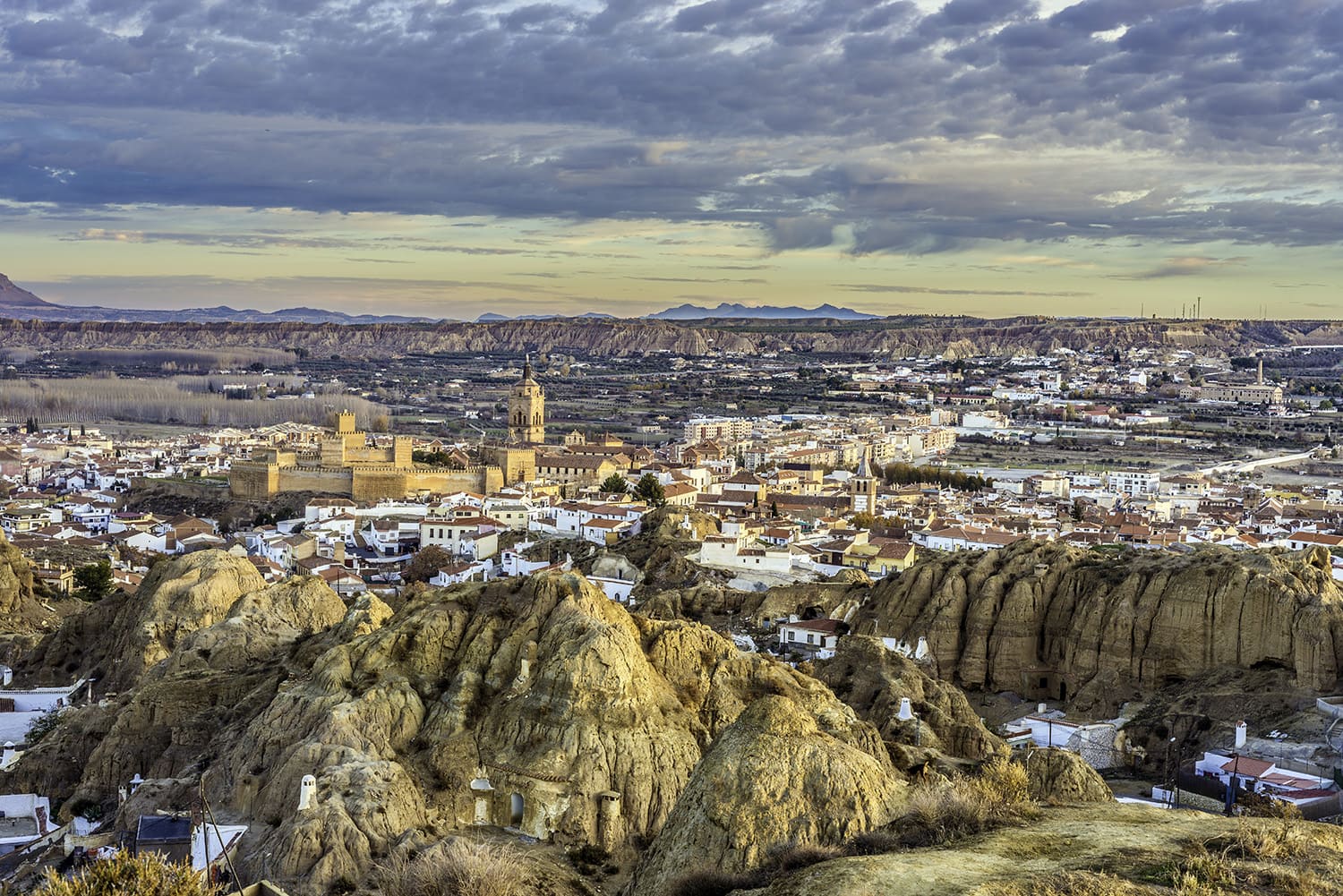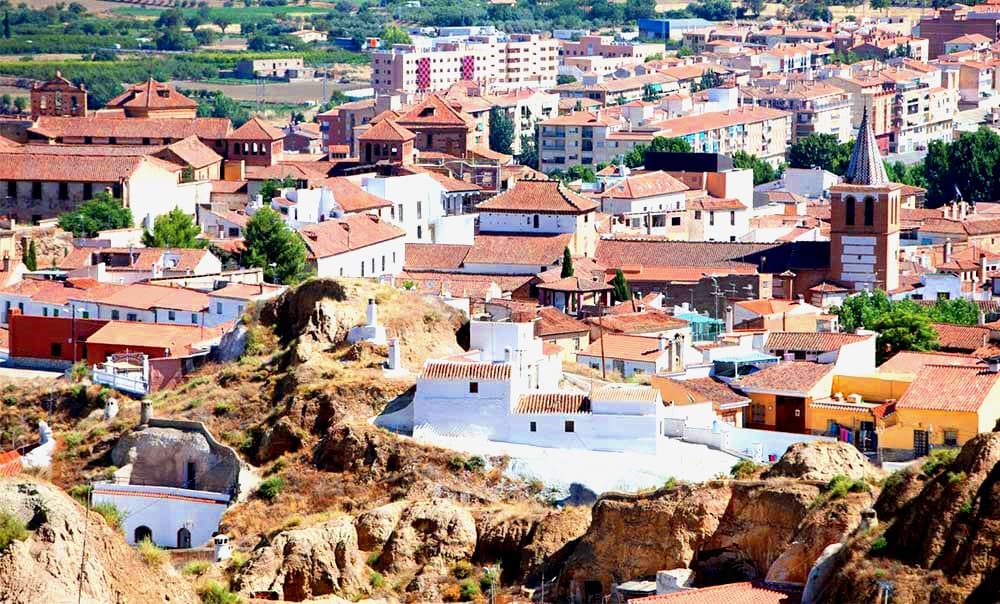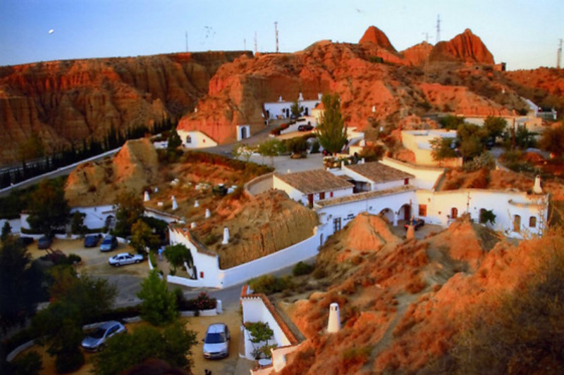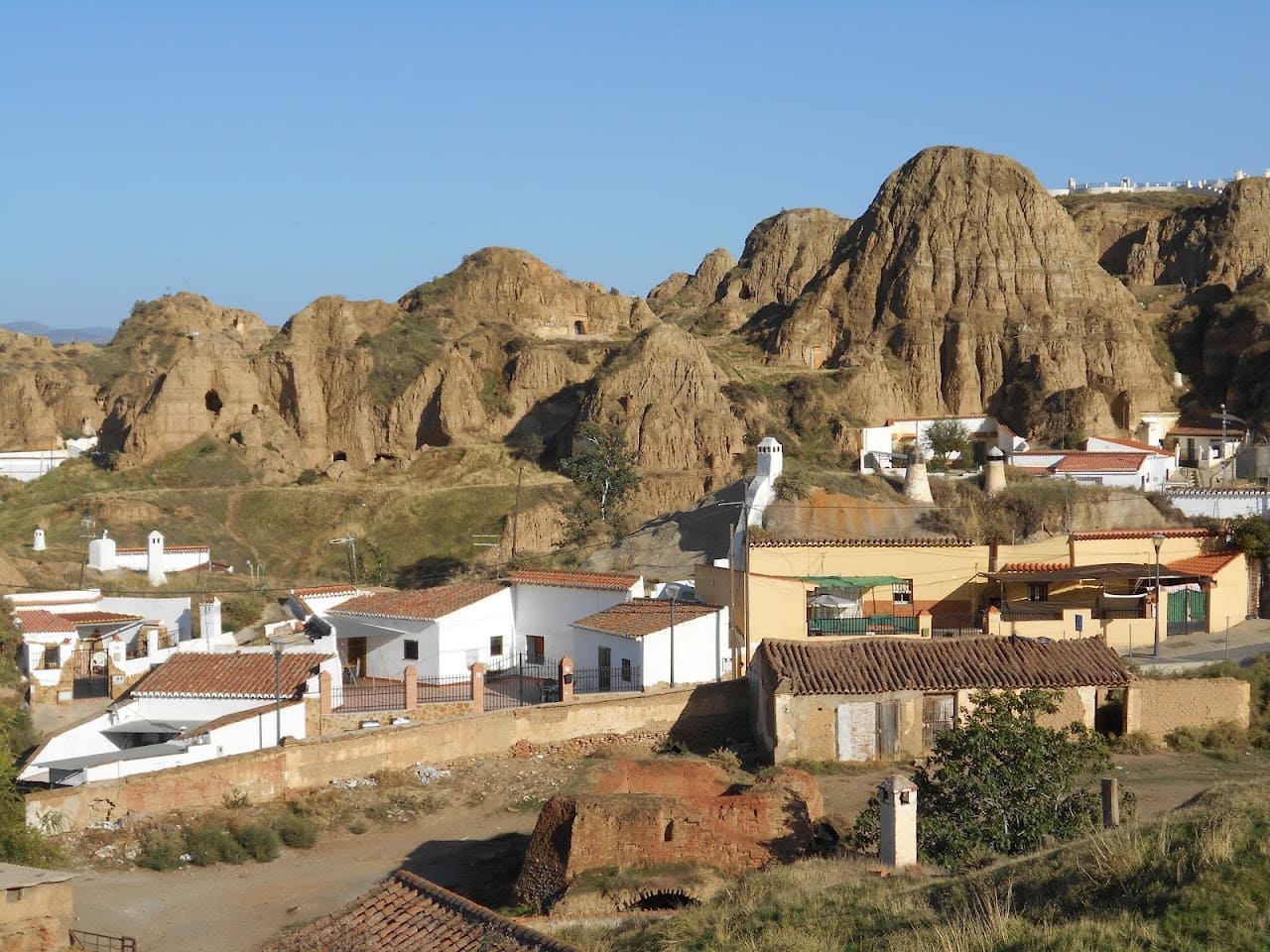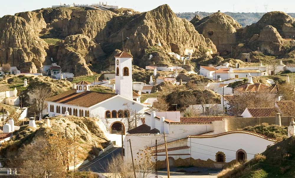 Cuevas de Guadix → viviendas excavadas en la arcilla, habitadas aún hoy; uno de los barrios trogloditas más extensos de Europa.