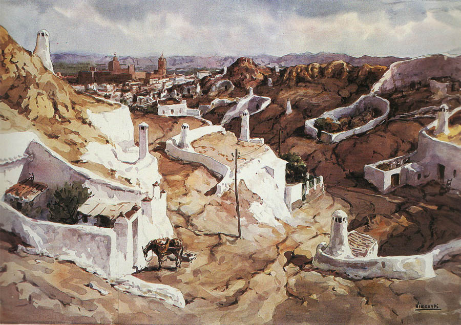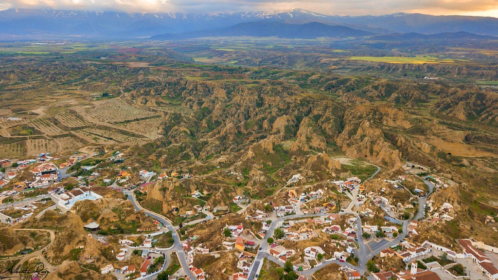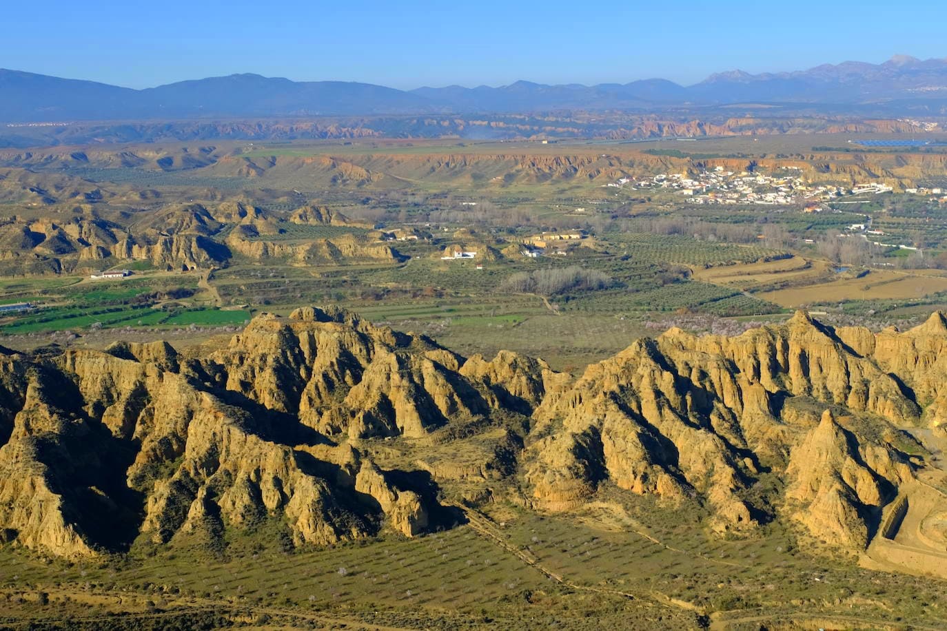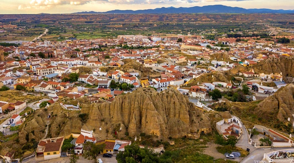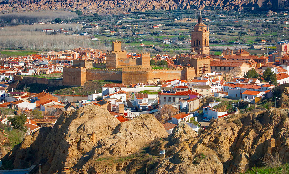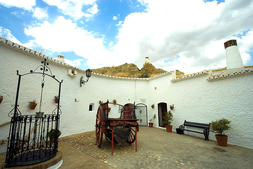 Cuevas de Guadix → viviendas excavadas en la arcilla, habitadas aún hoy; uno de los barrios trogloditas más extensos de Europa.