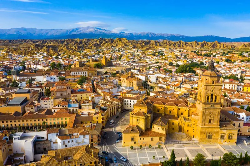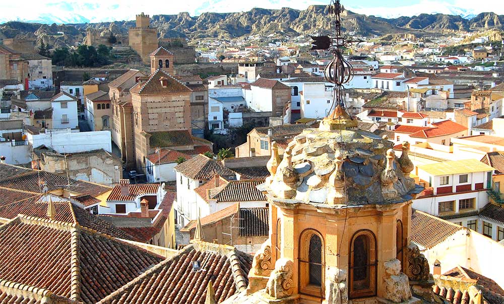 Catedral de Guadix → mezcla de estilos gótico, renacentista y barroco; domina el paisaje urbano.