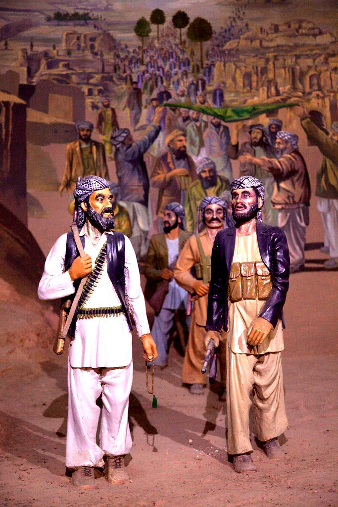 Incluye retratos de combatientes muyahidines