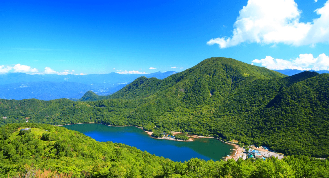 El monte Akagi, símbolo de Gunma, cuyas largas y suaves pendientes se ven de lejos es, junto con los montes Myogi y Haruna, uno de los Jomo Sanzan, los tres famosos montes de Gunma. En primavera se pueden observar muchas variedades de flores, especialmente azaleas, y a mediados de octubre, los tonos otoñales de sus laderas atraen a multitud de visitantes.