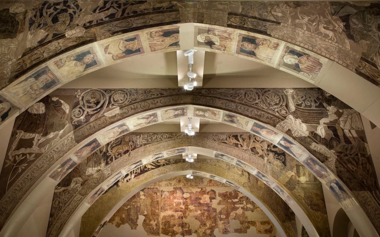 Pinturas murales románicas de la sala capitular (hacia el año 1200), consideradas entre las mejores de Europa.