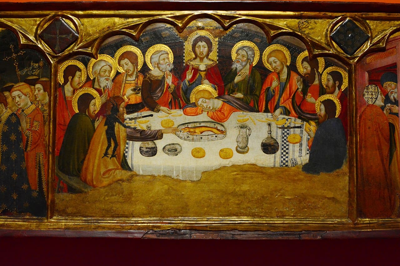 El rey de Aragón Pedro II, el Católico, murió excomulgado en la batalla de Muret, cerca de Toulouse, el 12 de septiembre de 1213. Fue enterrado en Toulouse, pero las monjas de Sijena, algunas de las cuales eran hermanas del rey, lucharon ante el Papa para que sus restos pudieran volver a su tierra y ser enterrados en Sijena. La recreación del sepelio de Pedro II, que se produjo en 1217 y convirtió al monasterio de Sijena en Panteón Real, se realizó como un acto destacado en el monasterio.