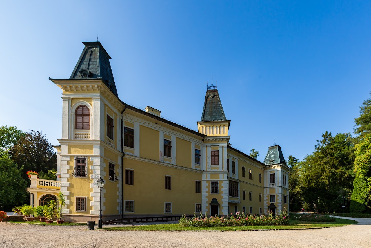 Los Andráši llenaron el castillo con una gran cantidad de muebles valiosos, obras de arte y colecciones. La biblioteca original fue fundada por Leopold Andráši en la segunda mitad del siglo XVIII. Su interior data de los años 1792-1795. El fondo está compuesto principalmente por literatura científica de los siglos XVIII y XIX. La mayor parte de las colecciones la constituyen obras pictóricas, especialmente cuadros de realistas del siglo XIX. La segunda parte de las colecciones (en la planta baja) la forman objetos exóticos importados y trofeos de caza, que no tienen un valor equivalente al de las colecciones artísticas. El parque está amenizado no solo por pequeños estanques, sino también por pequeñas construcciones de jardín (pabellones, grutas, fuentes). Cuenta con árboles exóticos poco comunes y restos de un antiguo tejo