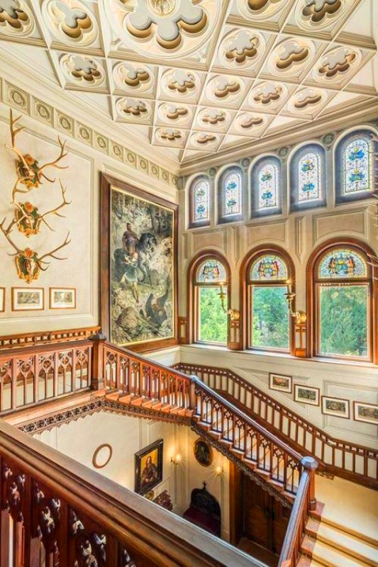 En el siglo XIX adquirió un estilo clasicista y posteriormente romántico, con torres neogóticas y ampliaciones decorativas.