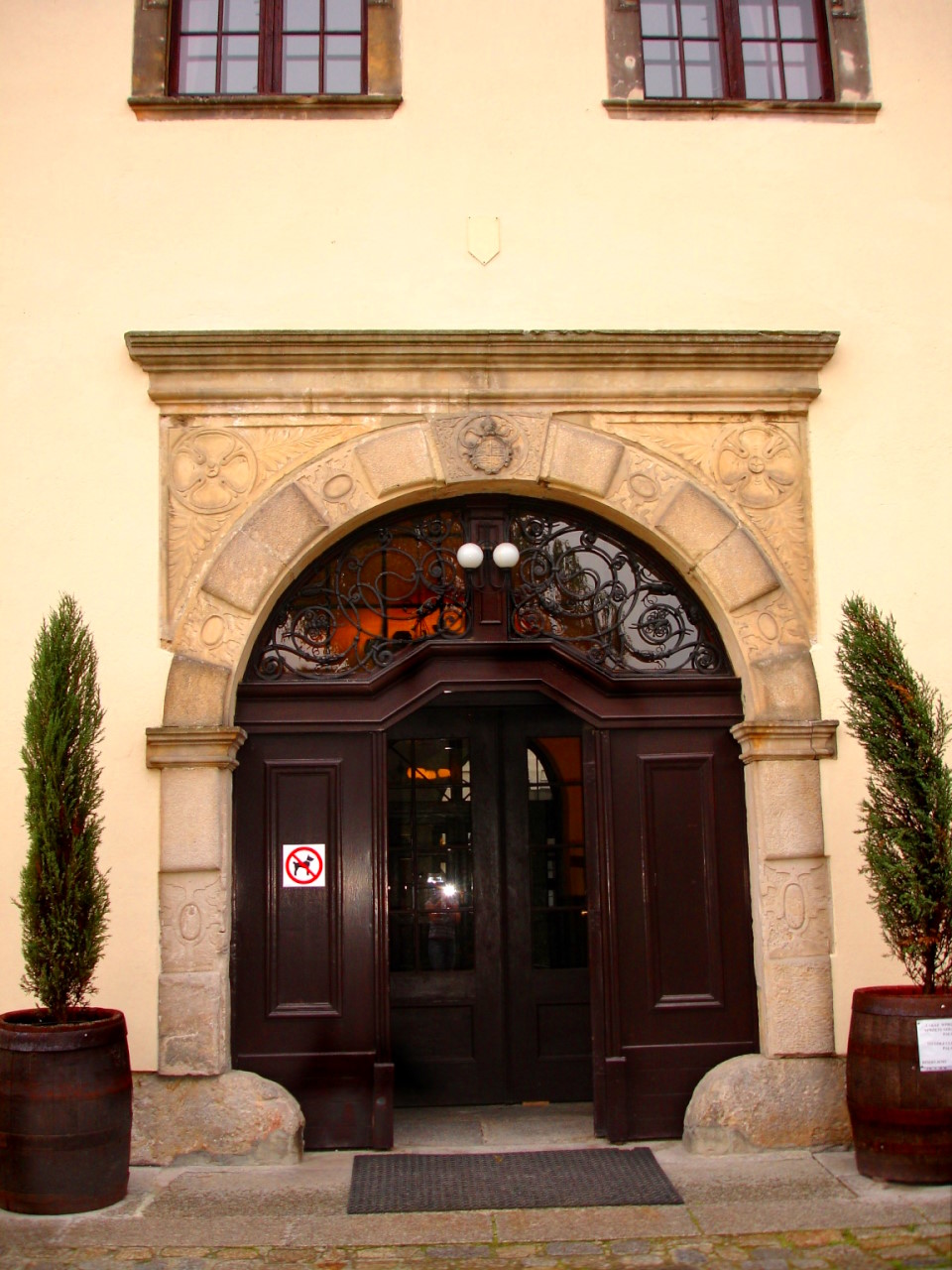 En la fachada sur hay un portal de entrada renacentista. En el broche, el escudo del abad. La consola del patio también está decorada con el escudo de los norbertinos (premonstratenses) con las iniciales CKASV. En la cornisa de la consola había una inscripción ANNO 1704.