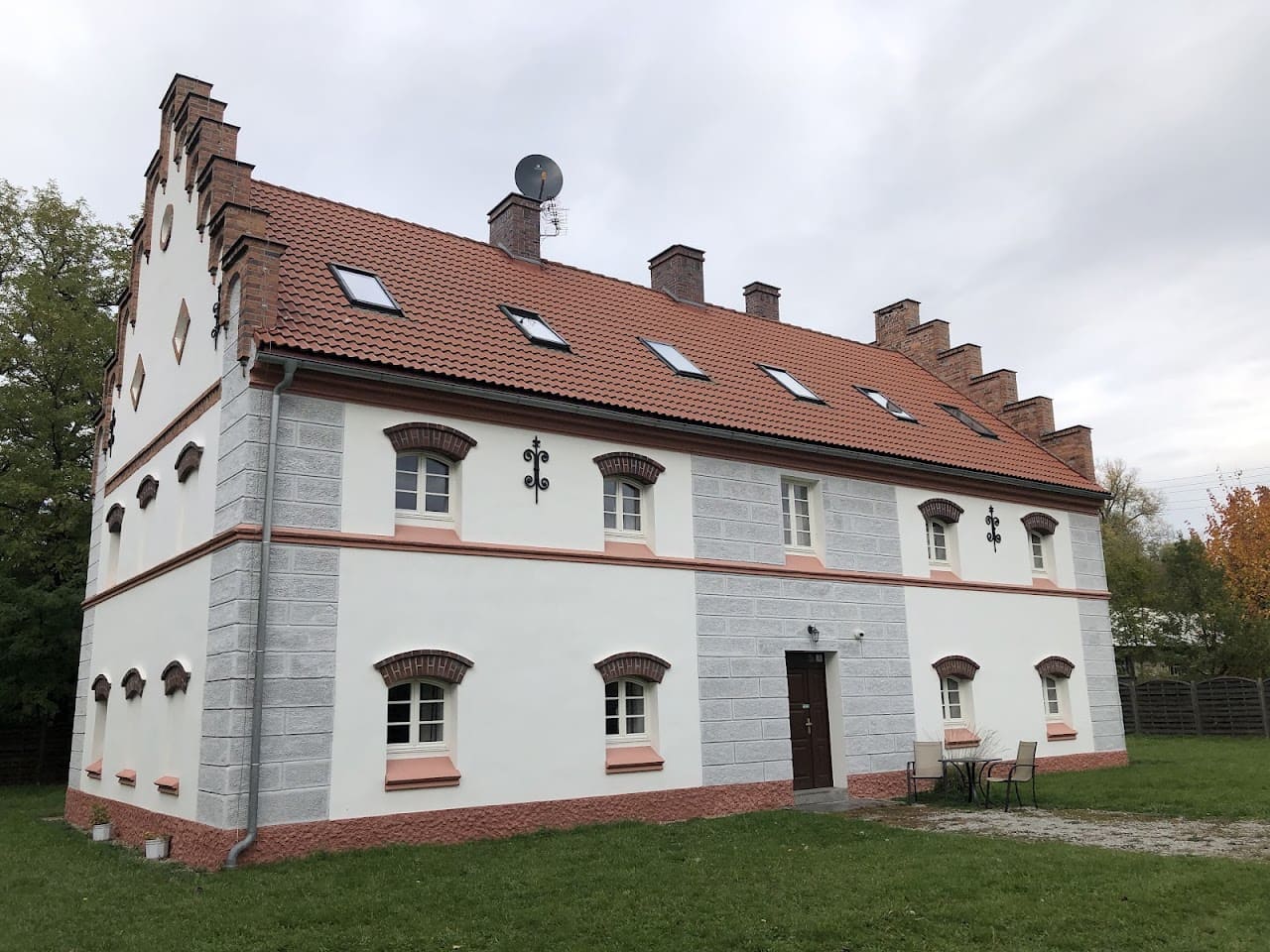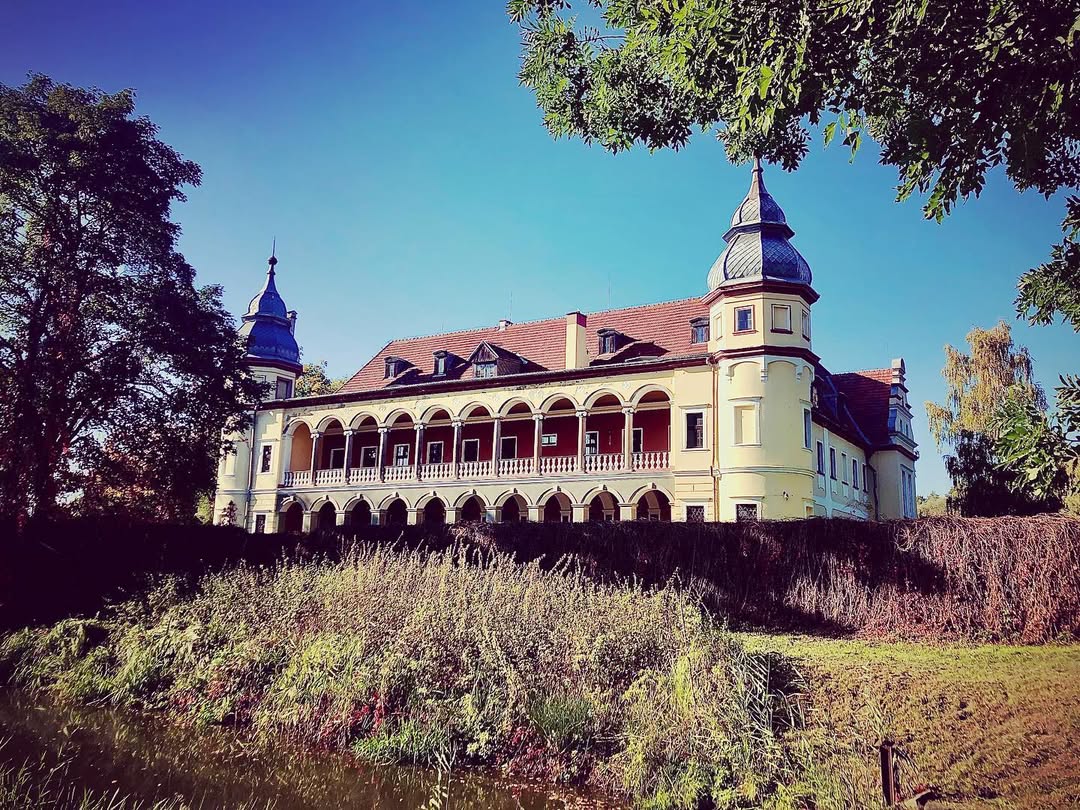 En el siglo XIV se encontraba aquí una construcción defensiva, que en 1349 compró Heinrich von Sitten. En 1417, el abad Andreas Rügler adquirió toda la aldea al siguiente propietario, llamado Optzkone, e incorporó la propiedad a los bienes del monasterio de San Vicente en Ołbin. En el lugar del antiguo edificio, en la segunda mitad del siglo XVI se construyó una mansión renacentista de mampostería, que albergaba la administración de las propiedades del monasterio y las viviendas de los funcionarios y los monjes que residían allí temporalmente. En 1646, el abad era Mateusz Stefan Rosenzweig. Las obras de renovación en 1675 fueron realizadas por Andres Gebel. Entre 1699 y 1704, el abad de los norbertinos de Breslavia, Karl Keller, llevó a cabo una ampliación general de la mansión (que constituye el ala noroeste del edificio actual), dándole su forma actual de residencia palaciega. En 1810, durante la secularización de los bienes eclesiásticos en Prusia, el palacio fue confiscado por el rey prusiano. En 1814, junto con Krobielowice, fue cedido al mariscal de campo G. L. von Blücher en reconocimiento a sus méritos y como recompensa por sus victorias sobre las tropas napoleónicas. Blücher murió en el palacio el 12 de septiembre de 1819 y fue enterrado en el mausoleo construido 34 años más tarde, cerca del pueblo. En 1878 se construyeron, en un estilo ecléctico, tres torres angulares con cúpulas de ladrillo, una terraza al sur y una veranda con arcadas. El palacio permaneció en manos de los Blücher hasta el final de la Segunda Guerra Mundial. Durante su reinado, se demolió el antiguo edificio de la puerta situado al este del palacio y se construyó una nueva destilería, una cervecería y una posada.