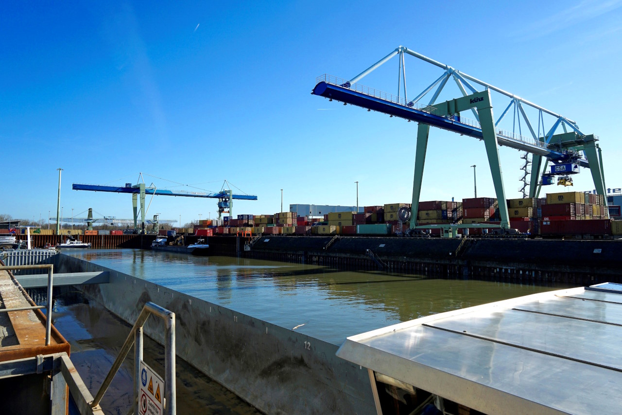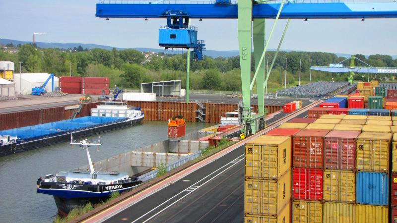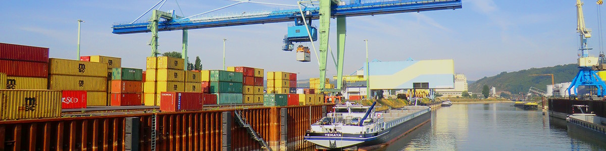 Transporte fluvial mediante barcazas y buques de carga con conexiones hacia los principales puertos interiores y marítimos europeos.