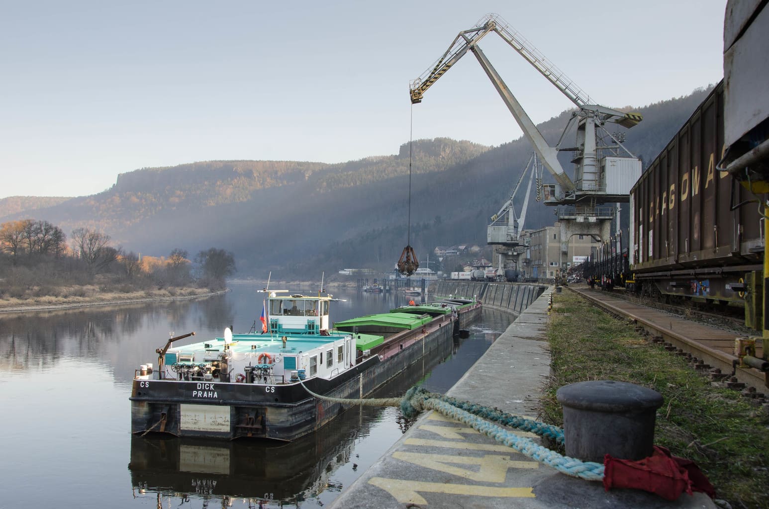 Un ejemplo muy ilustrativo de la importancia logística del Puerto de Děčín es el transporte de carbón procedente de Australia, documentado en operaciones recientes de la empresa ferroviaria ČD Cargo.