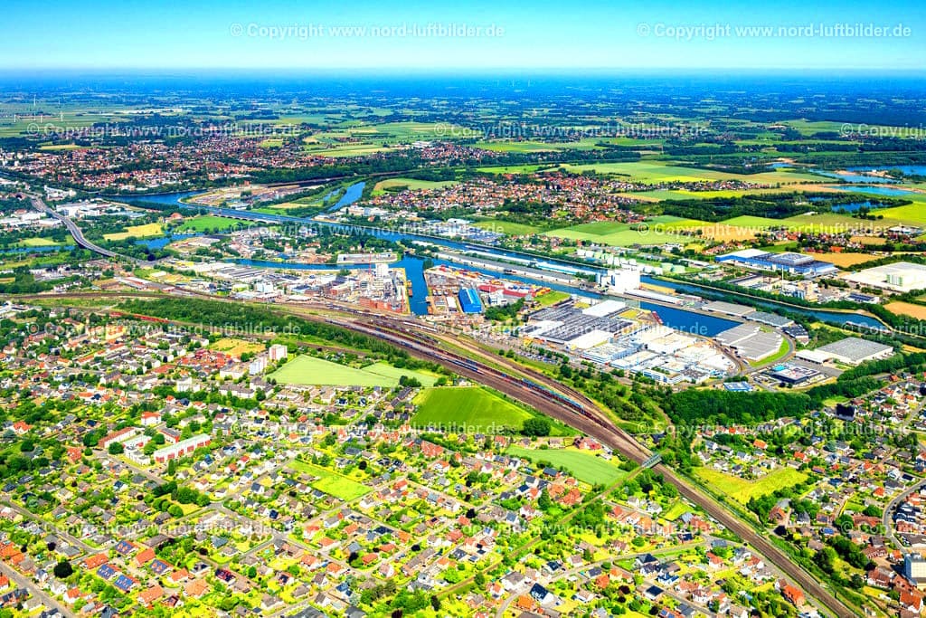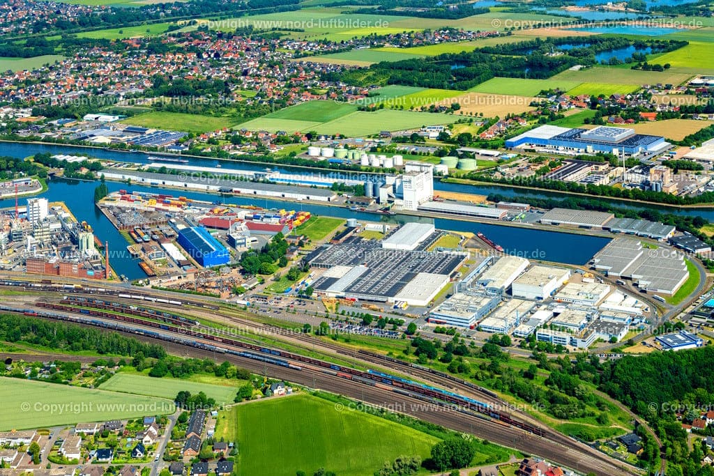 Hay cuatro dársenas: el puerto oeste ♁⊙ y el puerto este ♁⊙ directamente en el canal Mittelland, así como el puerto industrial ♁⊙ con dos dársenas en la bajada sur y el puerto de construcción ♁⊙ en la bajada norte.
