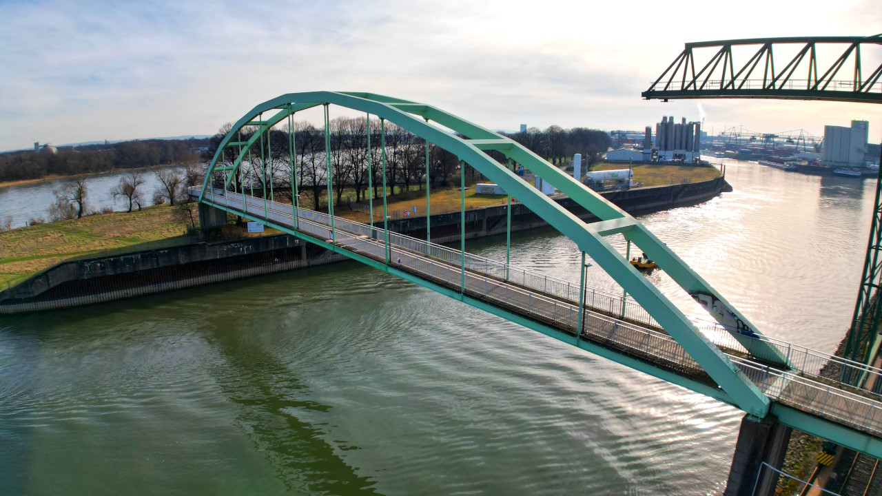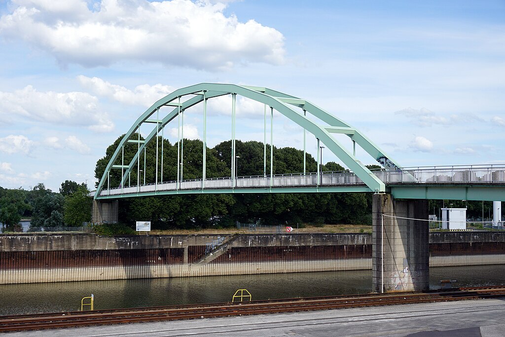 Un elemento emblemático es el puente Niehler Hafenbrücke, que cruza la entrada del puerto y conecta zonas residenciales con la ribera portuaria. Aunque ha sufrido daños y reparaciones a lo largo de los años, sigue siendo una pieza funcional y simbólica del paisaje de Niehl.