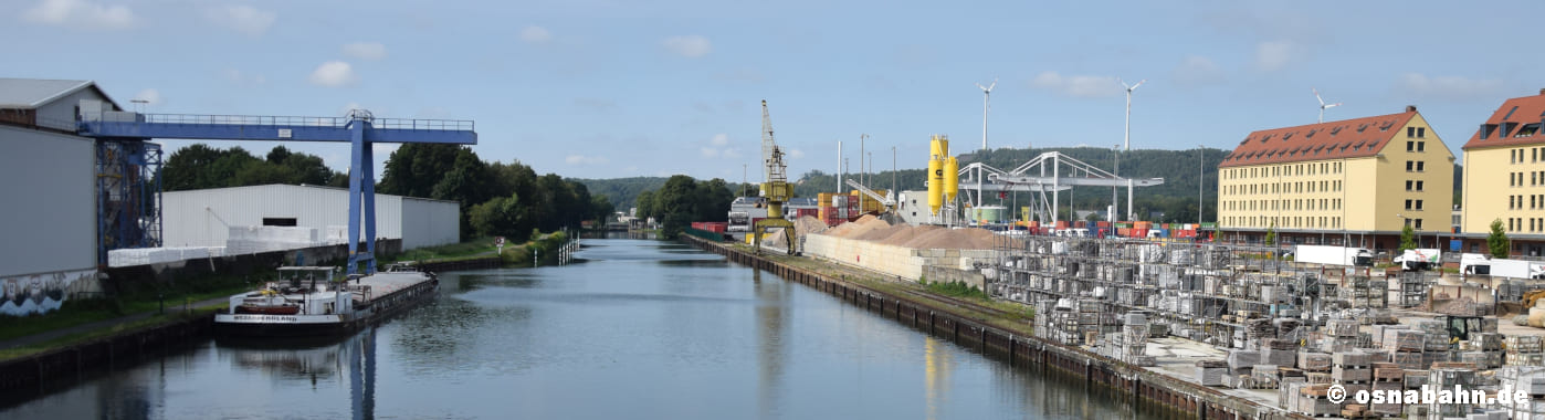 En 1905 se tomó la decisión de construir un canal derivado que conectara Osnabrück con el Mittellandkanal. Las obras comenzaron en 1912, y el puerto empezó a operar de forma efectiva durante la Primera Guerra Mundial. El 3 de abril de 1916 llegó el primer barco al puerto, cargado con grano procedente del norte de Alemania.