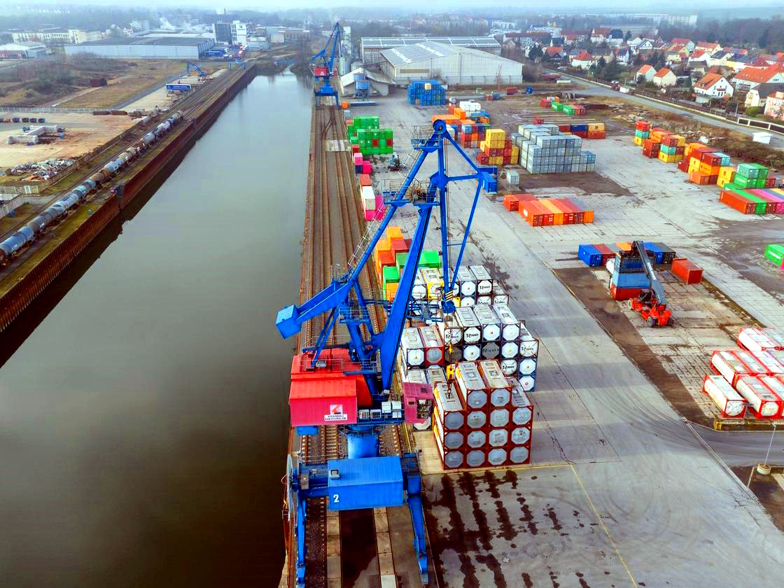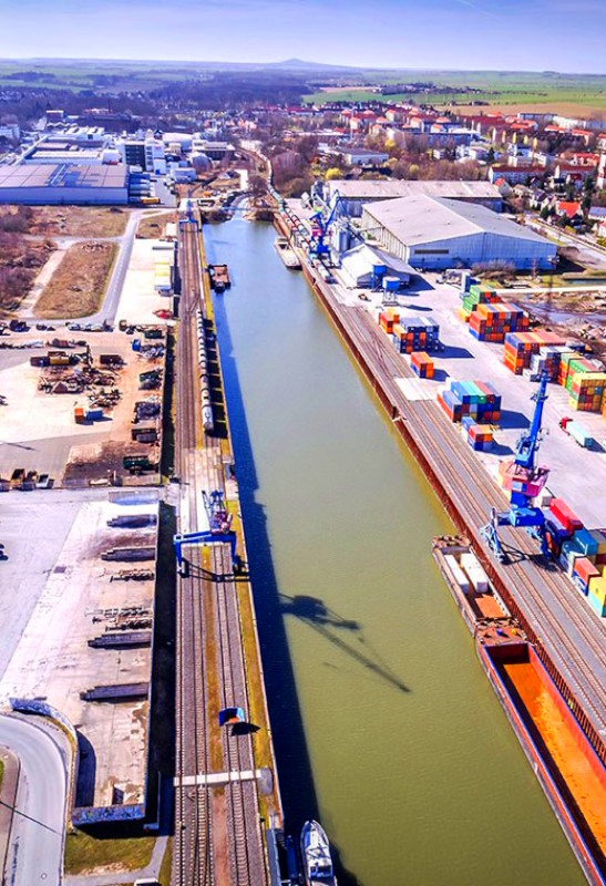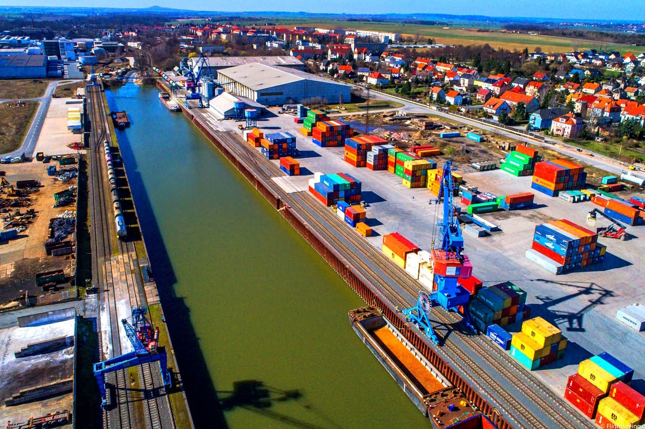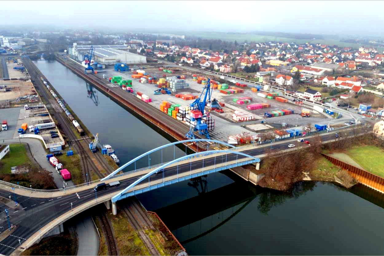 Hoy en día, el puerto de Riesa funciona como un centro logístico trimodal, es decir, conecta tres modos de transporte: