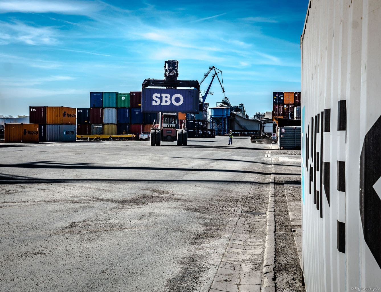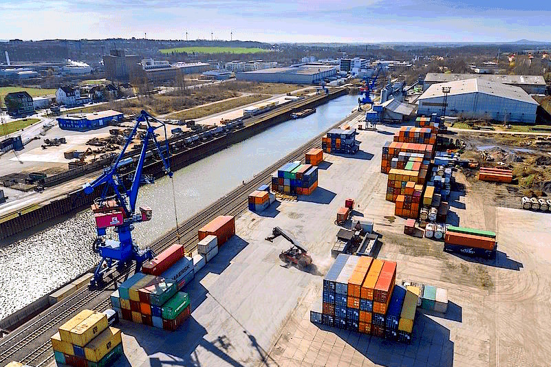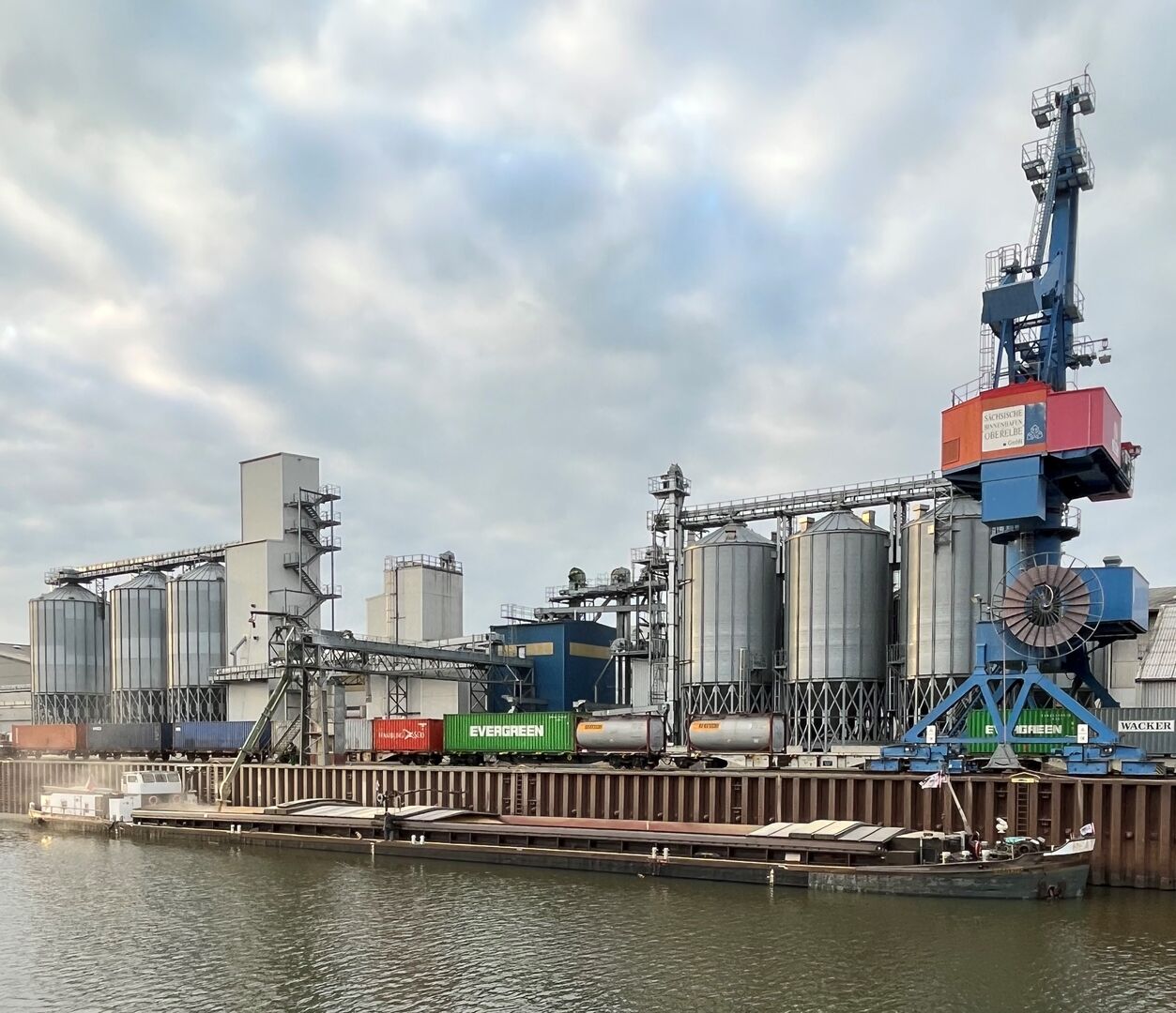 Hoy en día, el puerto de Riesa funciona como un centro logístico trimodal, es decir, conecta tres modos de transporte: