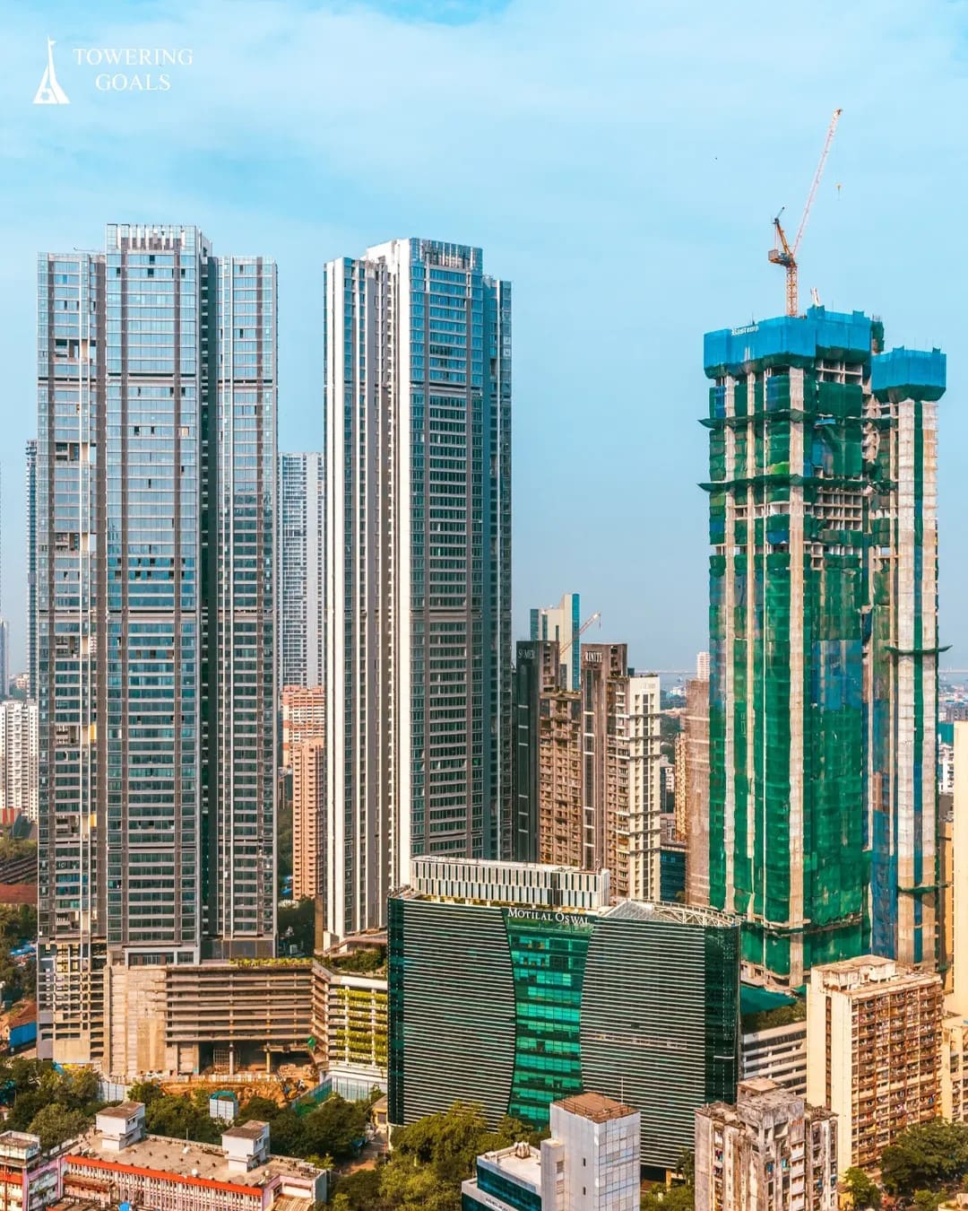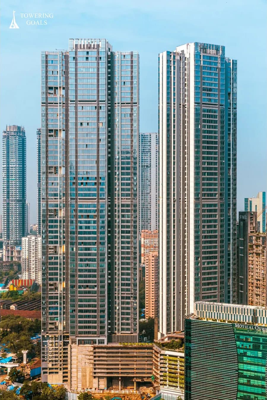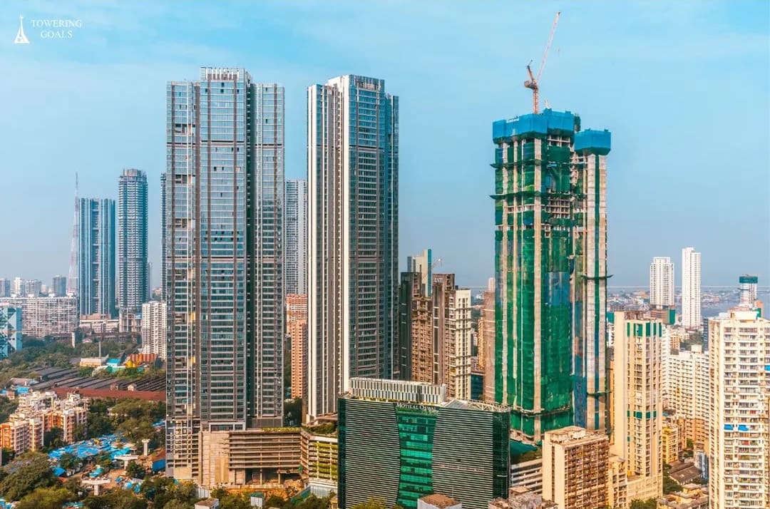 Descripción:El Rustomjee Crown es un complejo de tres rascacielos, 2 terminados en 2024 de 259 m y otro en construcción en Bombay, India.