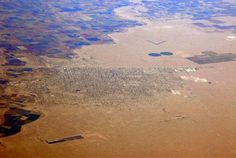La ciudad se encuentra a baja altitud y posee un clima desértico extremo, con veranos muy calurosos y escasas precipitaciones. Esta condición climática ha marcado profundamente su historia, su forma de vida y su desarrollo económico.