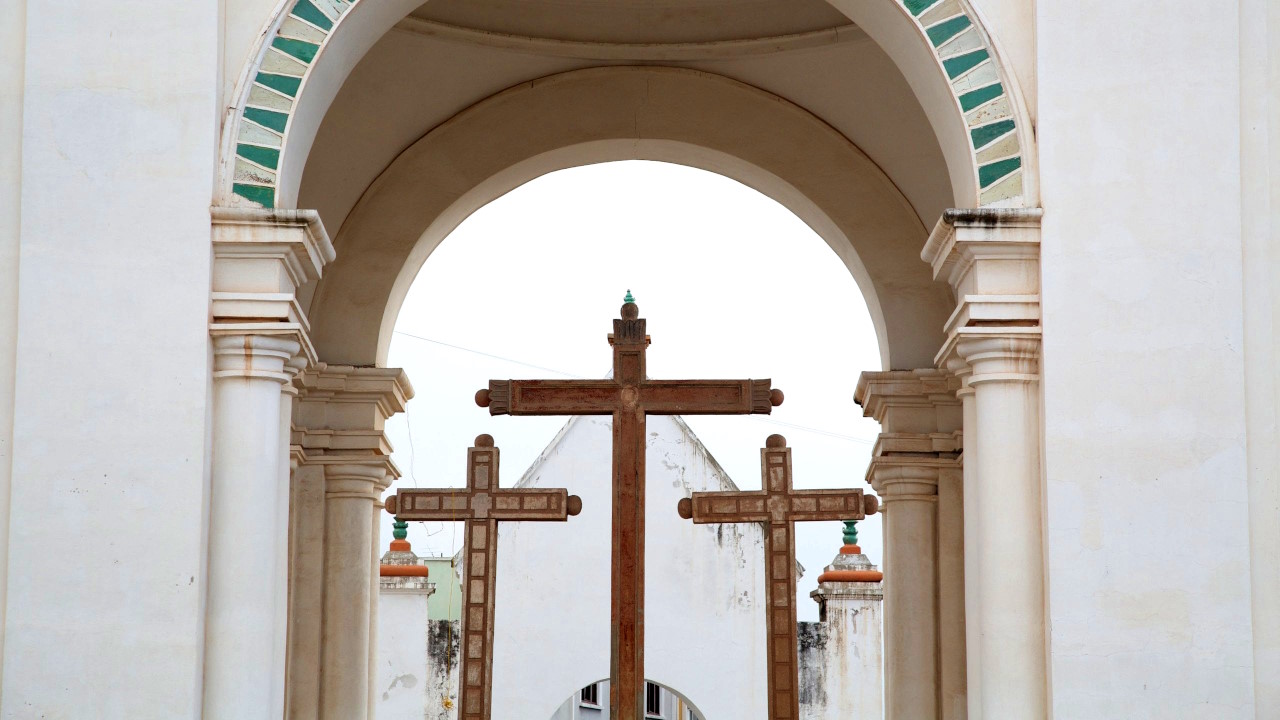 Atrio con posas procesionales