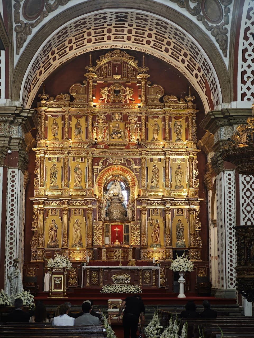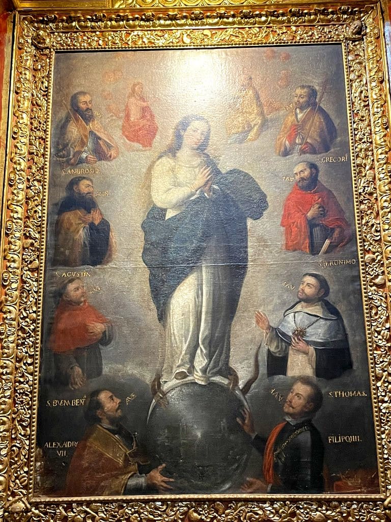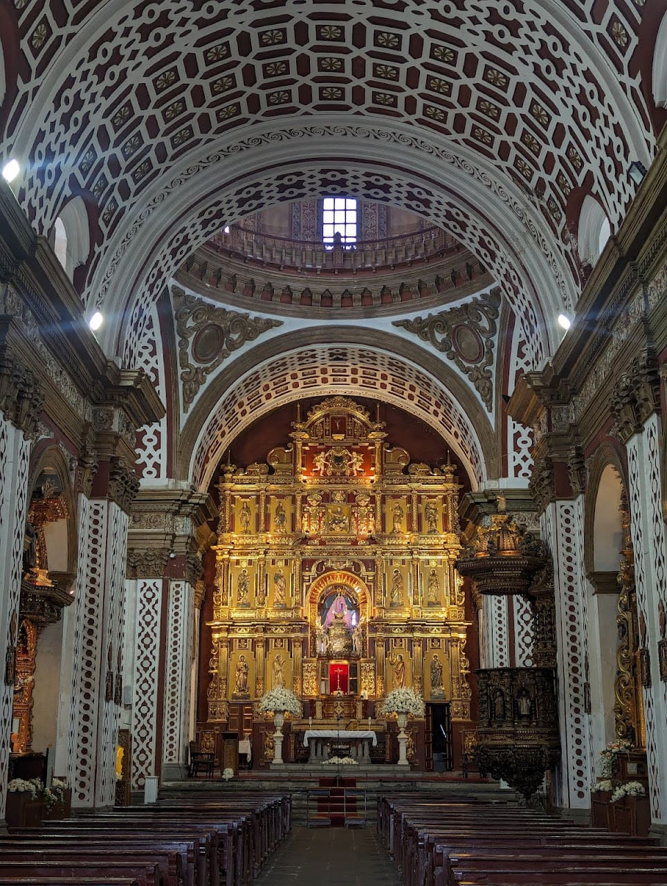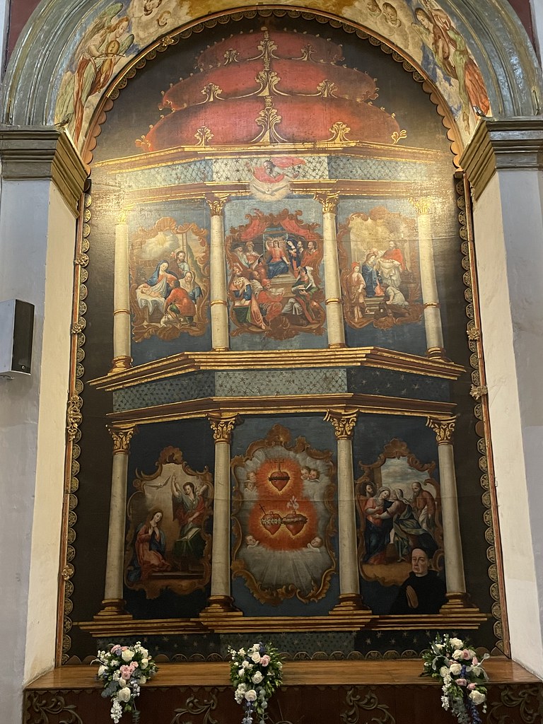 Destaca el púlpito barroco, considerado uno de los más importantes de América Latina, ricamente decorado con columnas salomónicas, nichos y esculturas policromadas.