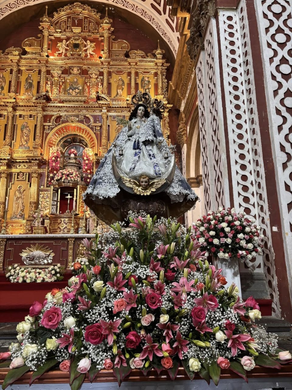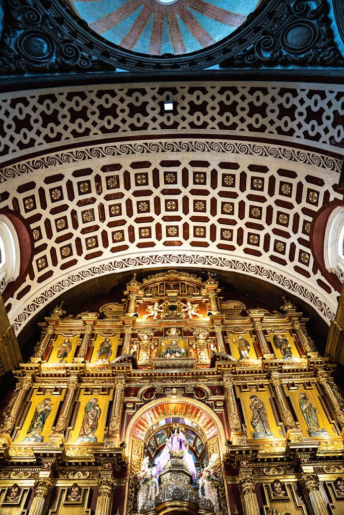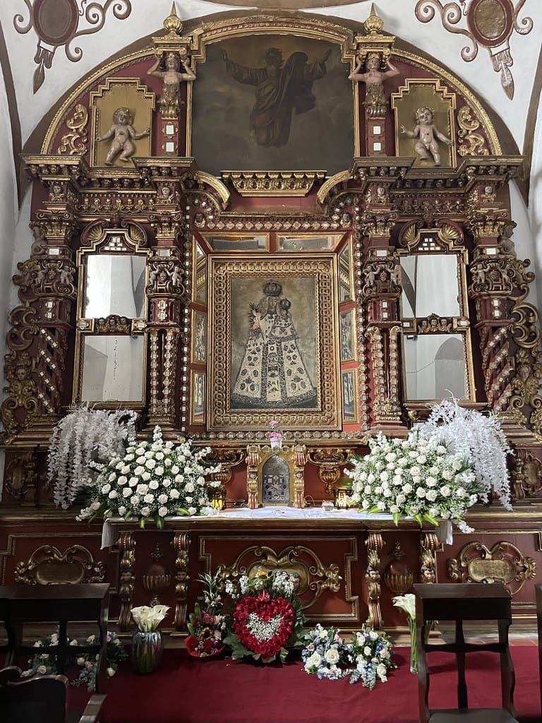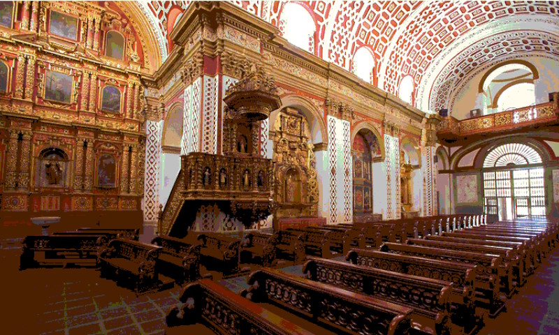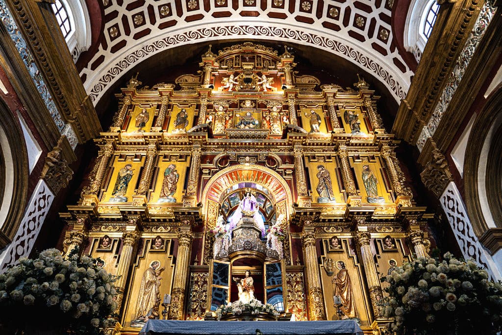 El interior del santuario es uno de los más ricos del arte sacro ecuatoriano: