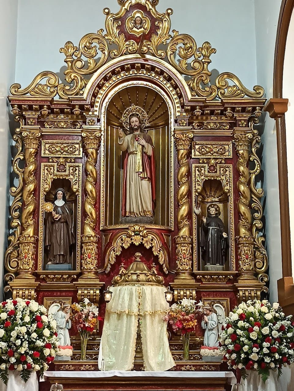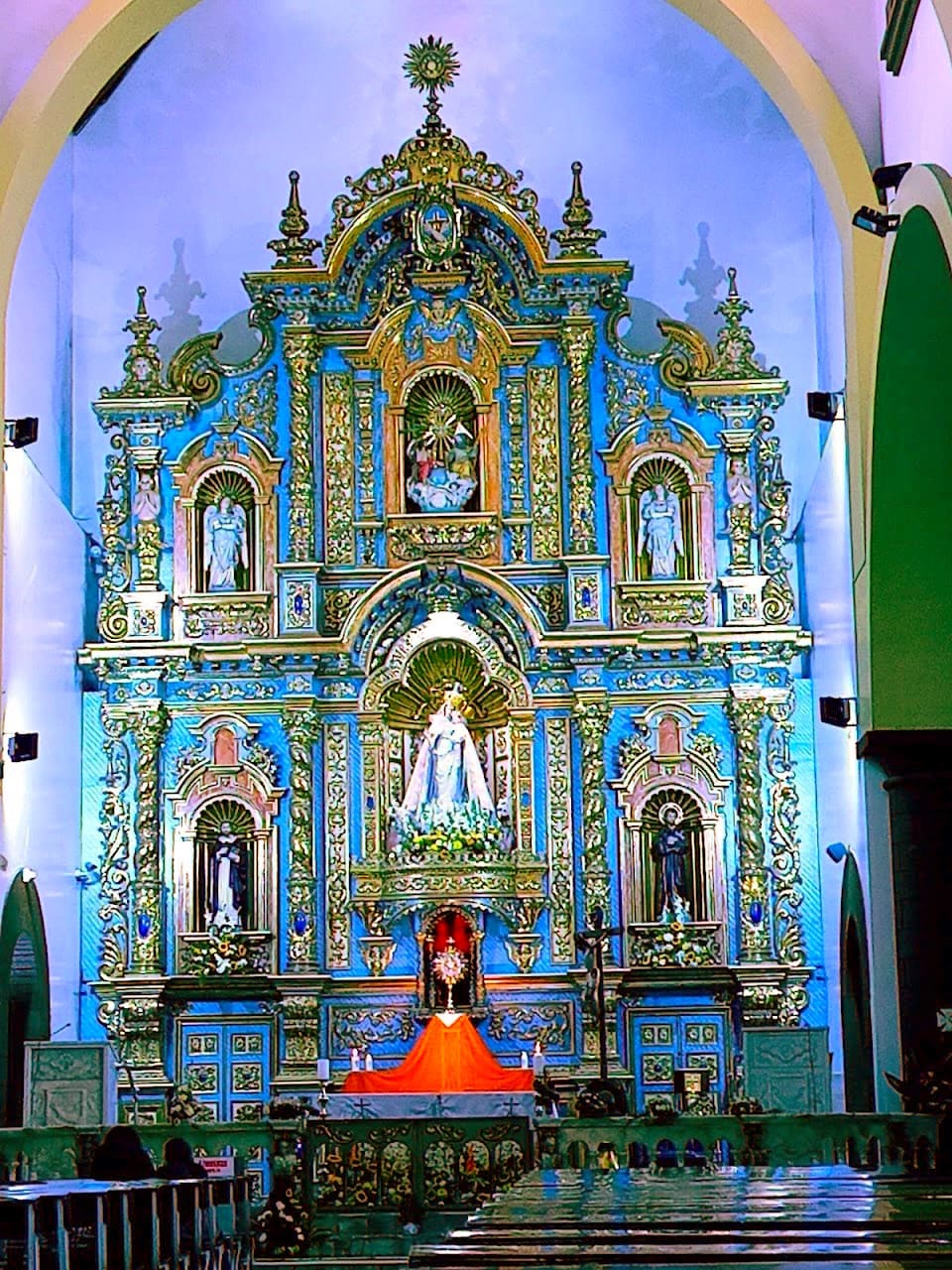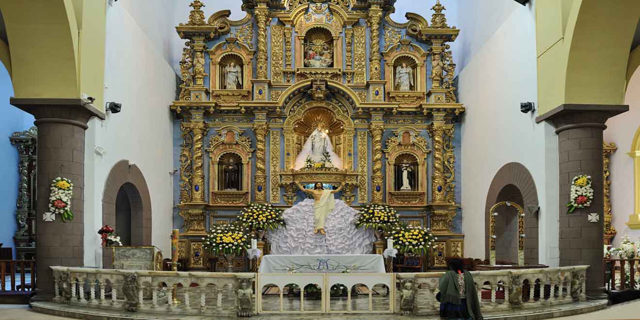 El Altar Mayor es una de las joyas artísticas del santuario. Está tallado en madera fina y recubierto con pan de oro, y en su parte central se encuentra la venerada imagen de la Virgen de la Nube, eje de la devoción popular.