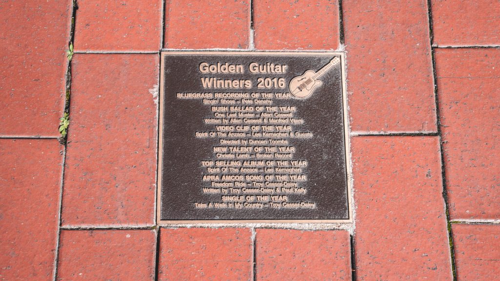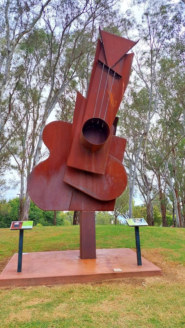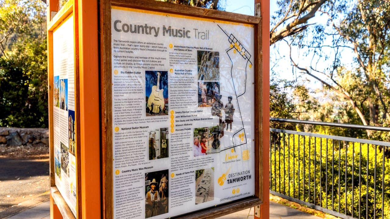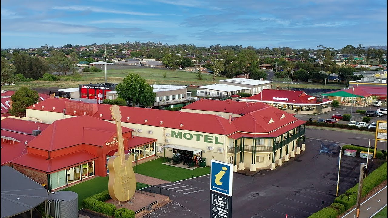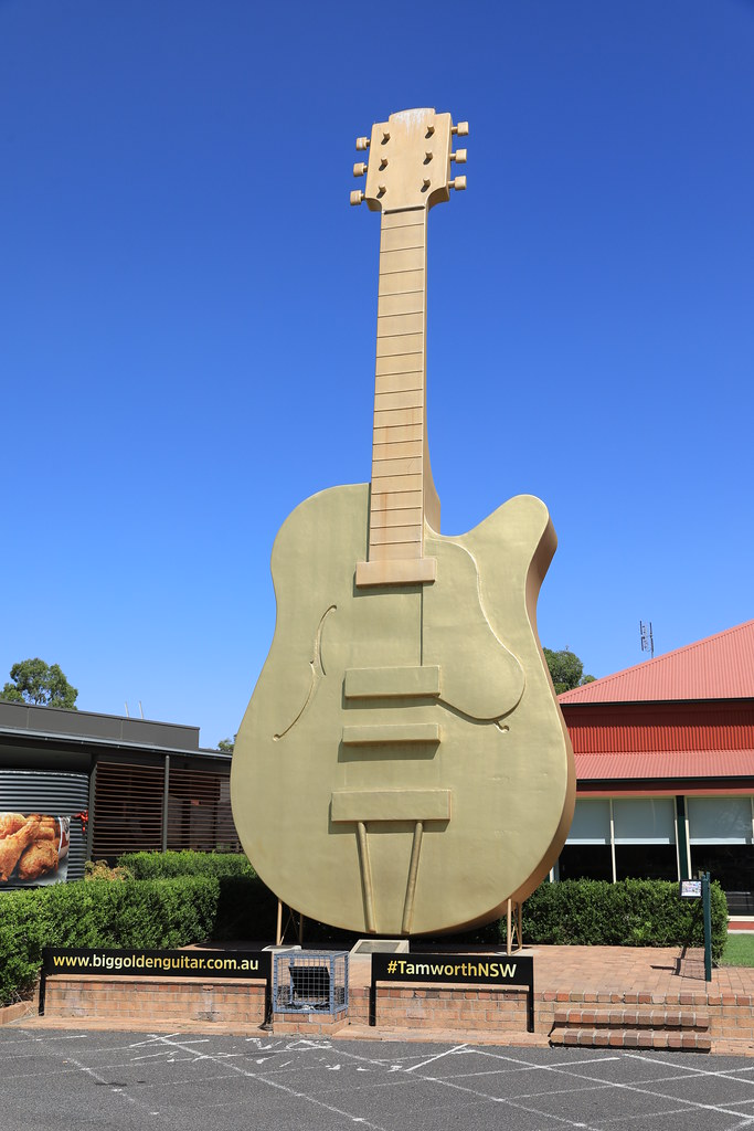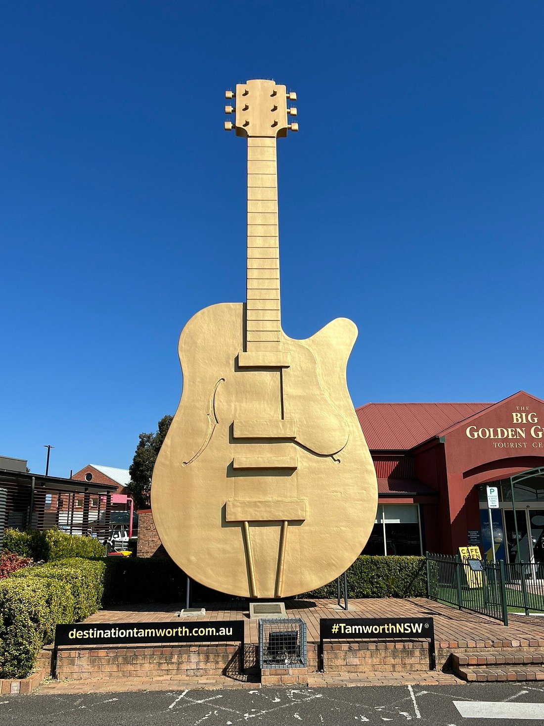 La escultura de la guitarra dorada de 12 metros de alto se encuentra junto a la ruta de acceso a la ciudad y es un símbolo de Tamworth. Es un punto obligado de foto para los visitantes.