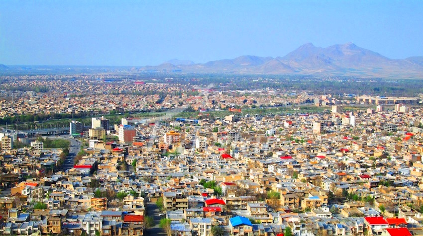 La ciudad de Urmía se encuentra en el extremo noroccidental de Irán, sobre el río Shahar y a 20 km al oeste del lago Urmía.