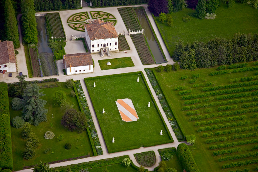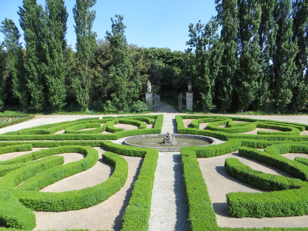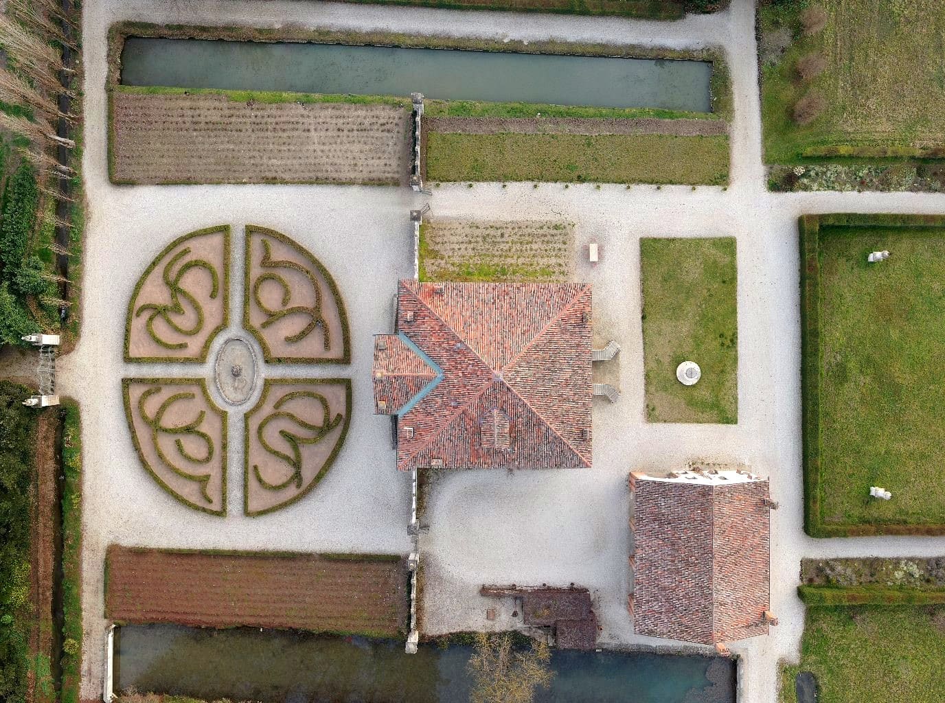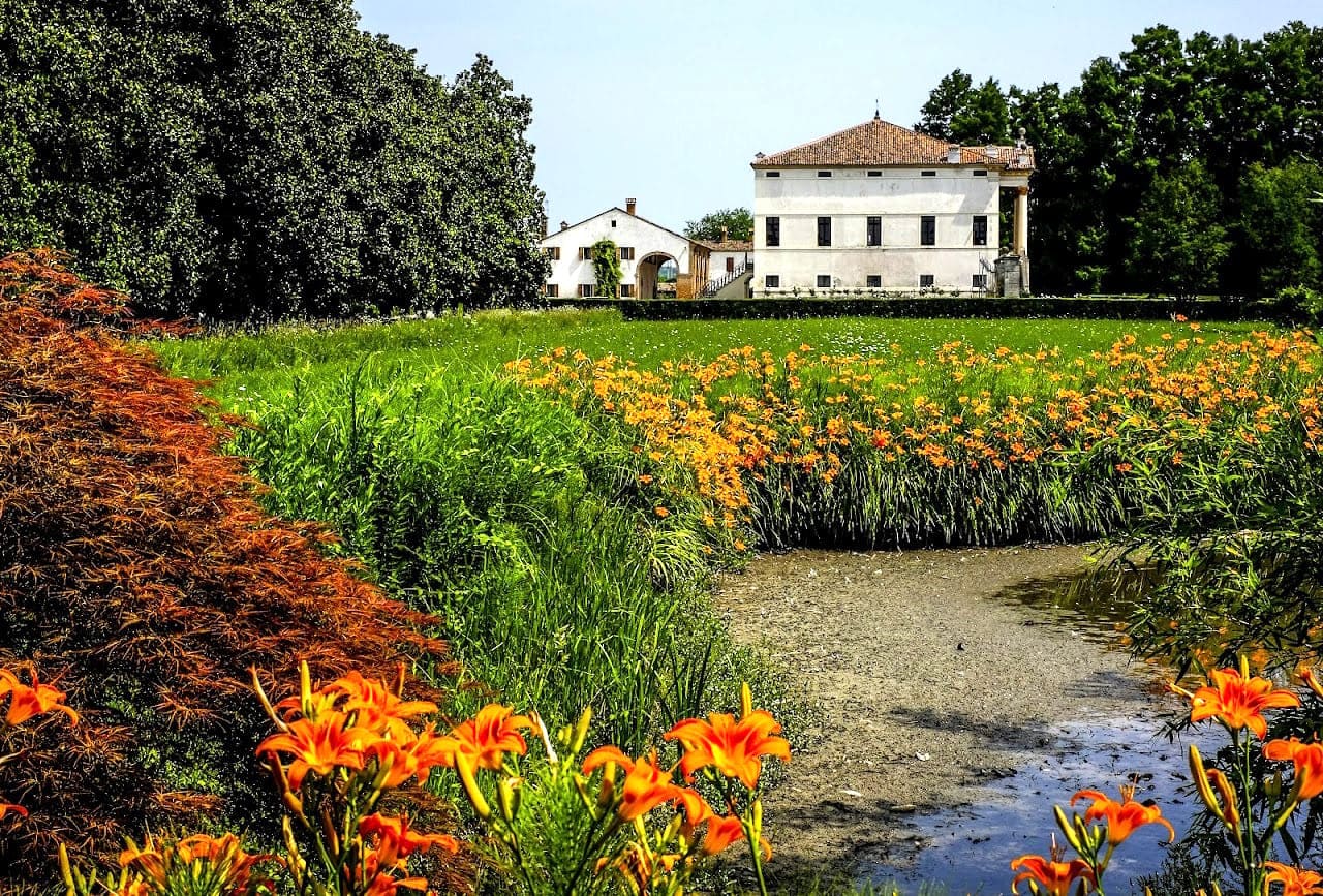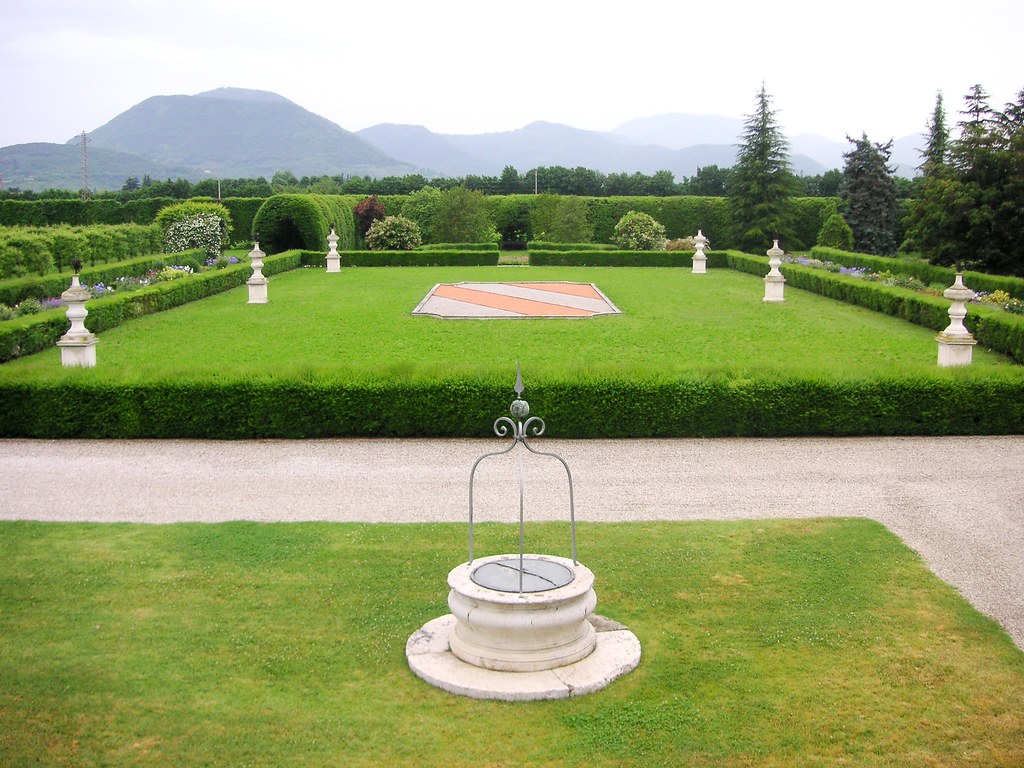 El jardín que rodea la villa está diseñado al estilo clásico “all’italiana”: con parterres, estanques o peschiere, alineaciones de árboles, espacios de paseo y transición entre el interior de la villa y la naturaleza exterior.