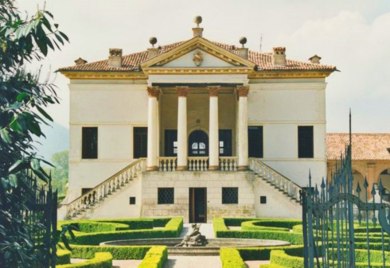 La datación exacta de la villa no está completamente establecida, pero lo que se sabe es lo siguiente: se concluyeron los principales trabajos constructivos hacia el año 1588, lo que permite descartar que fuera obra directa de Andrea Palladio (que falleció en 1580). Se atribuye la autoría con mayor probabilidad al arquitecto Vincenzo Scamozzi, aunque algunos estudios barajan que podría haber participado su padre, Giandomenico Scamozzi, o que el proyecto siguiera ideas de alguno de ellos.
