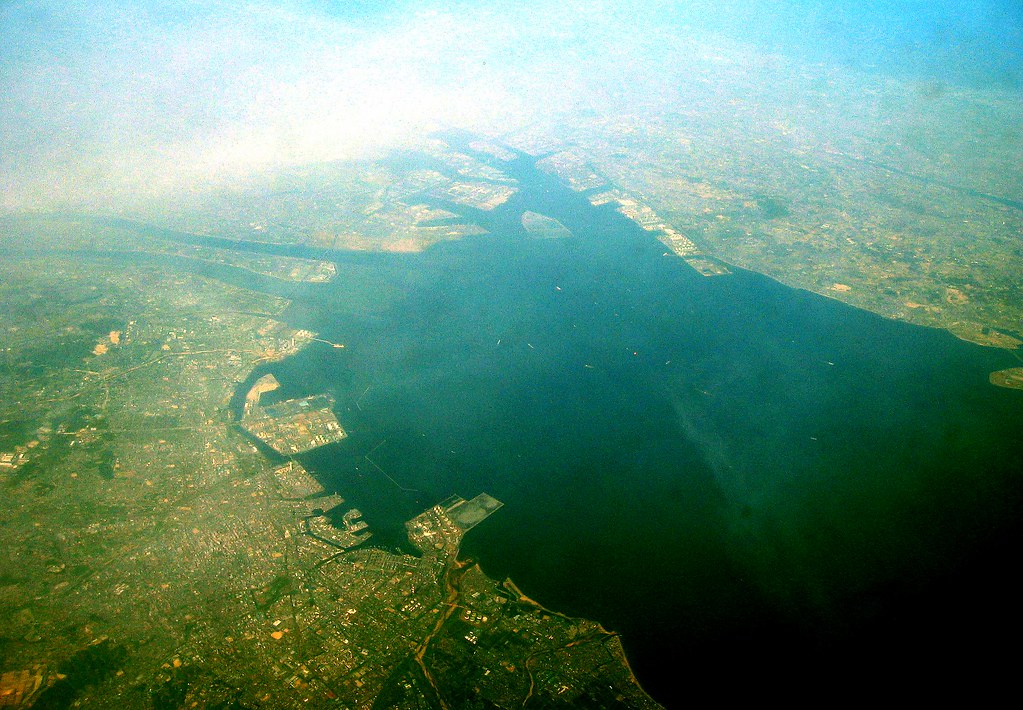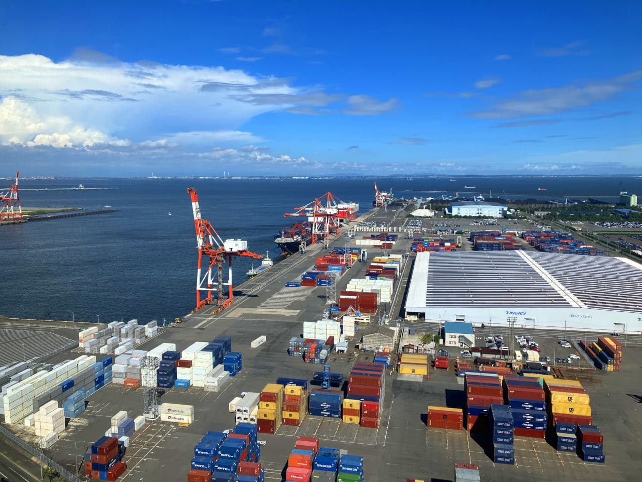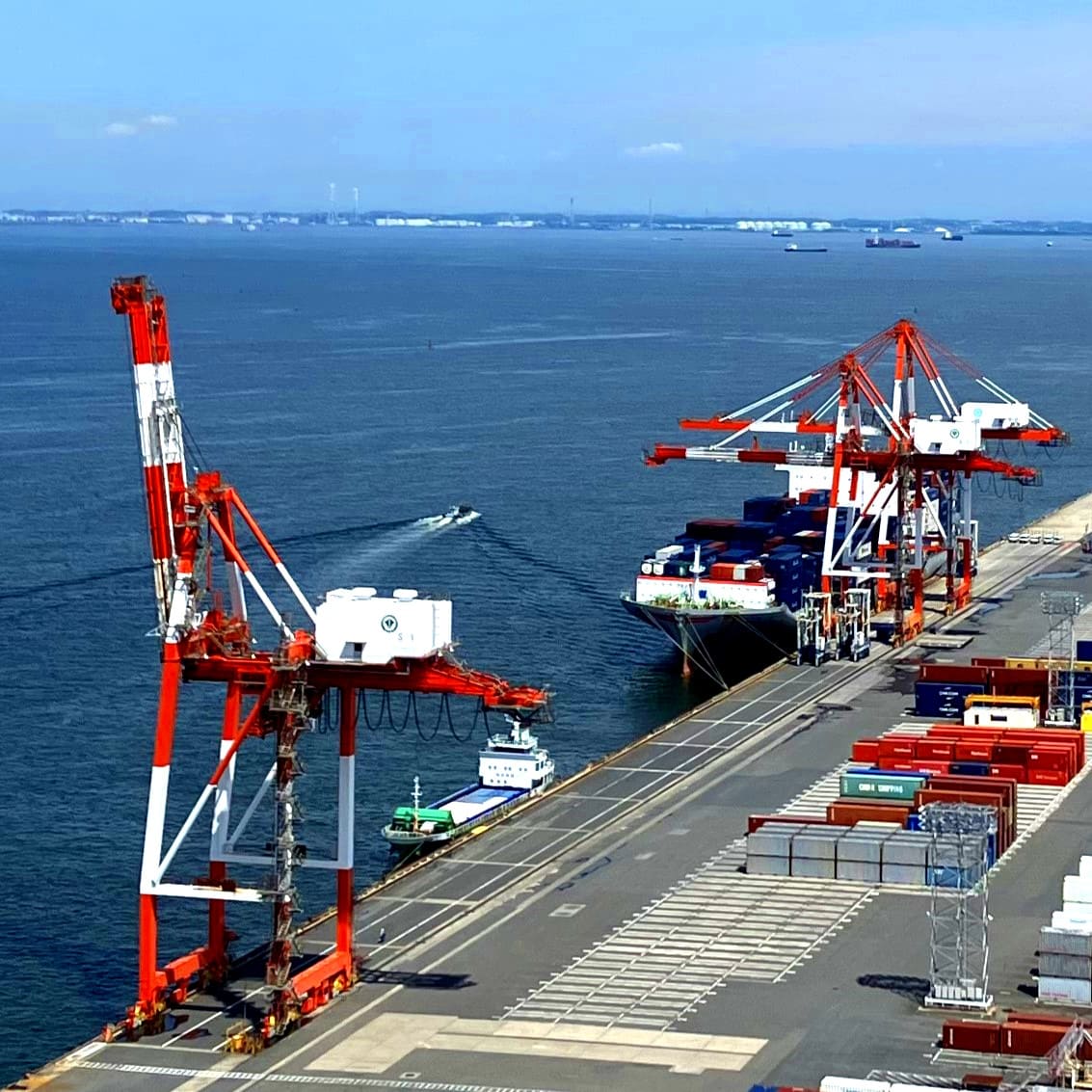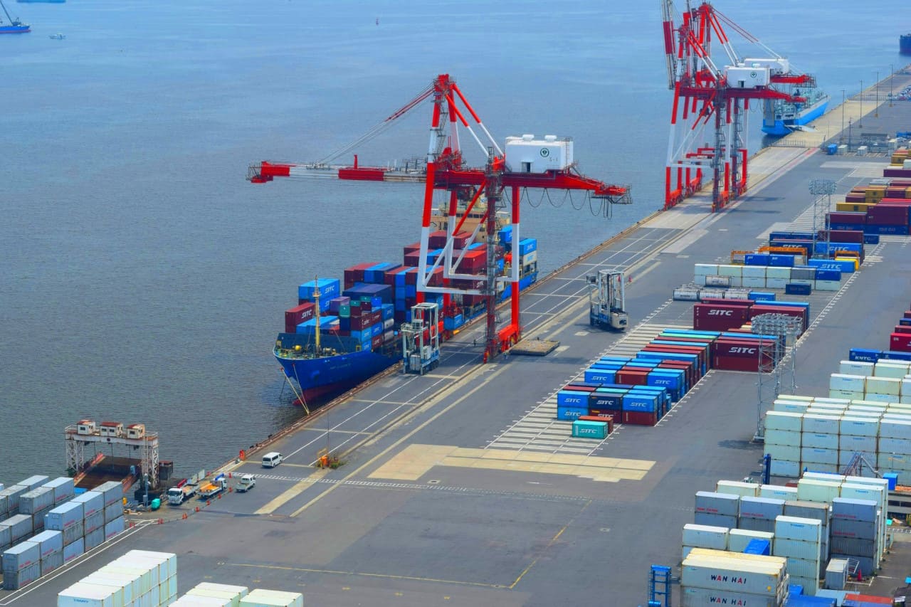 Gran puerto industrial con terminales de contenedores.